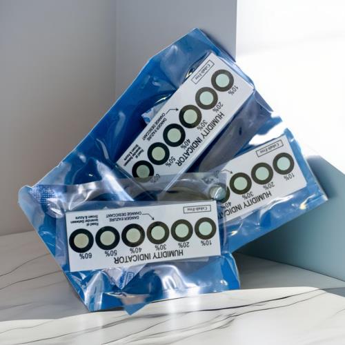 大部分的电子元器件、精密光学部件等电子、仪器设备容易受到湿气的影响导致产品锈蚀、灵敏度降低甚至导致不可恢复的损坏。为避免产品受到湿气的侵蚀及损坏,大部分产品会采用防潮包装组合,在最后成品及半成品的包装阶段对产品进行保护,而湿度显示卡就是便捷、经济的检测湿度是否在受控范围的物料,当打开密封袋,湿度卡上的颜色显示读出的数据就可以作为监察密封包装内的湿度是否在规定的湿度范围之内的依据,同时,也能间接反映出密封包装内的干燥剂是否发挥吸潮效果。